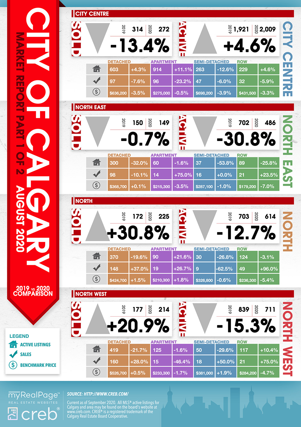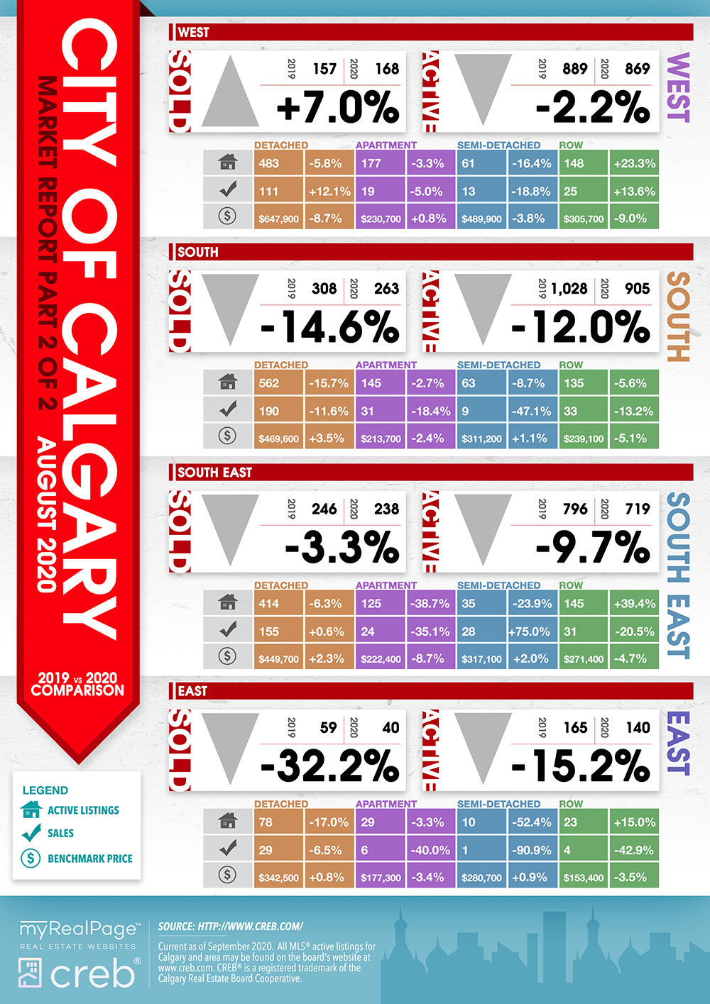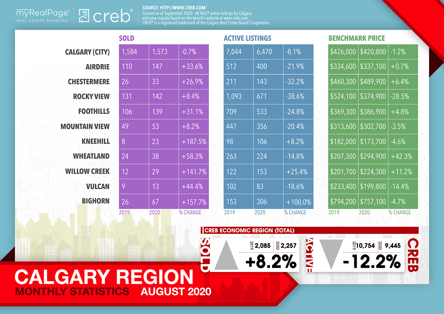 INFOGRAPHICS: August 2020 CREB City And Region Market Reports